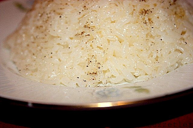6- Pilavı 15 dk kadar dinlendirdikten sonra servis edebilirsiniz..Değirmende yeni çektiğiniz karabiberle tüketmenizi tavsiye ederiz